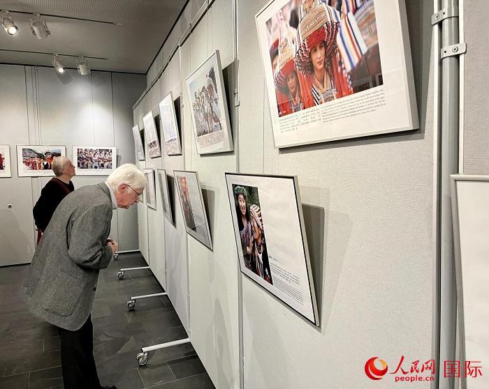 德國(guó)民眾參觀《民族盛裝》圖片展。人民網(wǎng)記者 張慧中攝 |