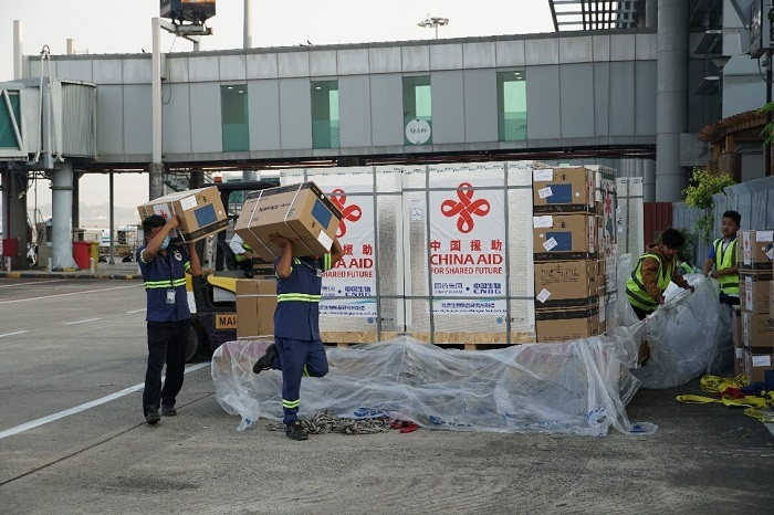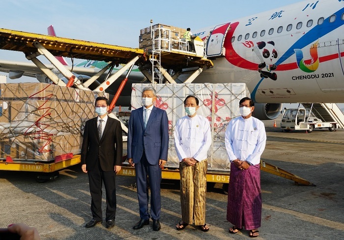 中國(guó)援緬新一批疫苗運(yùn)抵仰光 。人民網(wǎng)記者 李秉新攝