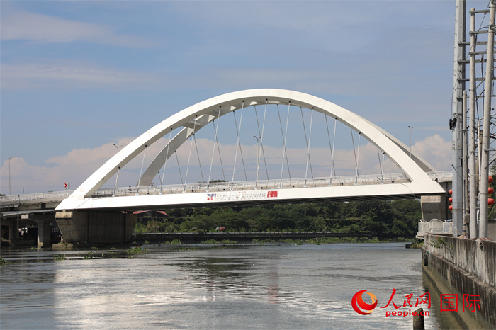 由中國(guó)政府援建的菲律賓比農(nóng)多-王城大橋橫跨馬尼拉城區(qū)的帕西格河,連接著兩岸的歷史文化街區(qū)。圖為2022年10月中旬拍攝的比農(nóng)多-王城大橋。人民網(wǎng)記者 趙益普攝