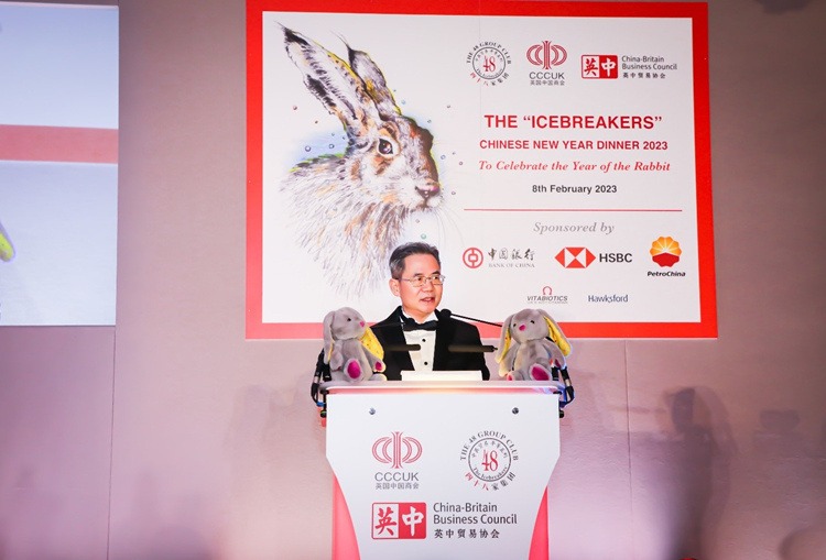 此次新春活動(dòng)以“共慶中國年 揚(yáng)帆新征程”為主題,來自中英兩國政商界400多位嘉賓齊聚一堂,共賀中國新春兔年,共話中英企業(yè)新合作,共啟中英經(jīng)貿(mào)新征程。