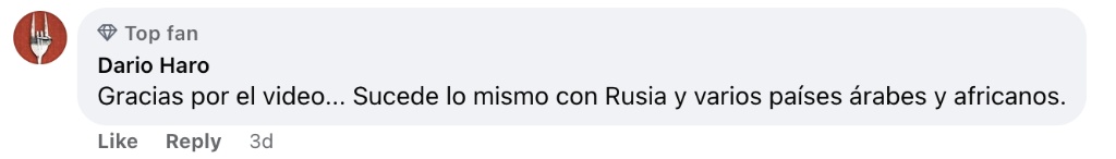 阿根廷網(wǎng)友達里奧·哈羅說:“感謝這條視頻,他們正在針對俄羅斯做類似的抹黑,以及針對很多阿拉伯和非洲國家?!?/p>