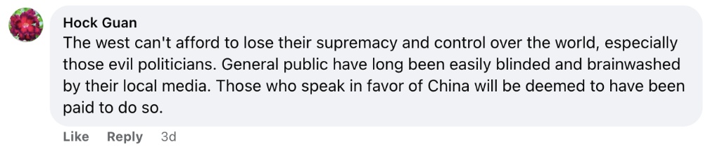 馬來西亞網(wǎng)友關霍克說:“西方不能失去對世界的霸權和控制,尤其是那些邪惡的政客。長期以來,公眾很容易被西方媒體蒙蔽和洗腦。”