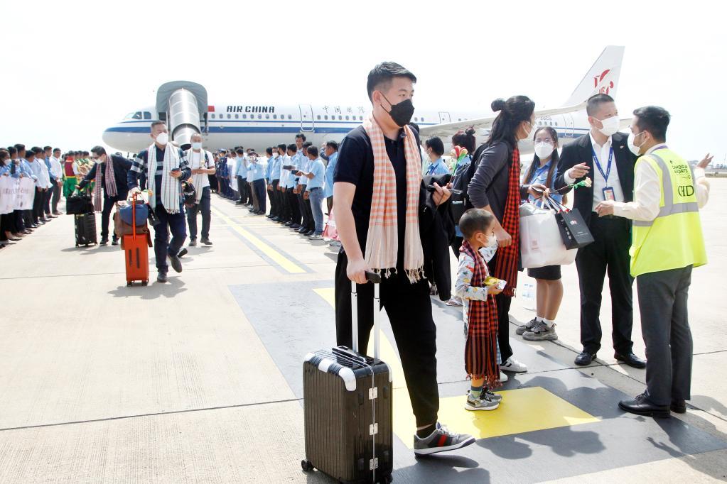 2月7日,一架載有中國(guó)乘客的國(guó)航航班從北京出發(fā)抵達(dá)柬埔寨首都金邊國(guó)際機(jī)場(chǎng),受到柬方熱烈歡迎。