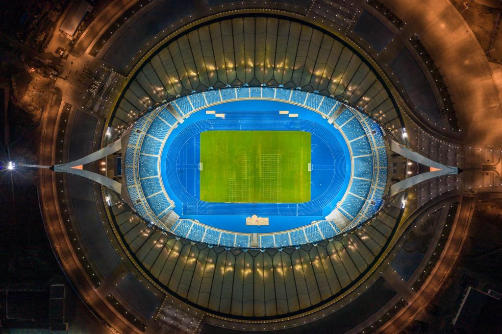 這是2021年9月9日在金邊拍攝的柬埔寨國(guó)家體育場(chǎng)(航拍照片)。