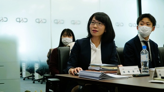 日本瑞穗銀行中國營業(yè)推進(jìn)部次長崔京月介紹該行在中國開展的業(yè)務(wù)。(攝影:蔣曉辰)