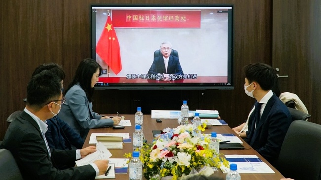 中國駐日本大使館經(jīng)濟(jì)商務(wù)公使宋耀明、廈門市貿(mào)促會副會長顏志平、在日中國企業(yè)協(xié)會會長王家馴、日本貿(mào)易振興機(jī)構(gòu)廣州代表處所長岡田英治、丸紅株式會社執(zhí)行董事兼中國總代表筱田聰夫,瑞穗銀行執(zhí)行理事兼瑞穗銀行(中國)有限公司行長吉浦賢哉等嘉賓為活動致辭。廈門市商務(wù)局對外經(jīng)濟(jì)合作處處長丁南、廈門市外辦亞洲處處長郭琳在廈門會場出席會議。數(shù)十名中日兩國企業(yè)代表在兩地參加了交流會。