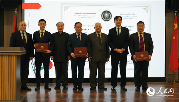 2月20日,“支持巴勒斯坦權(quán)利”學(xué)術(shù)外交國(guó)家獎(jiǎng)證書(shū)轉(zhuǎn)交儀式在京舉行。人民網(wǎng)記者 曾書(shū)柔攝