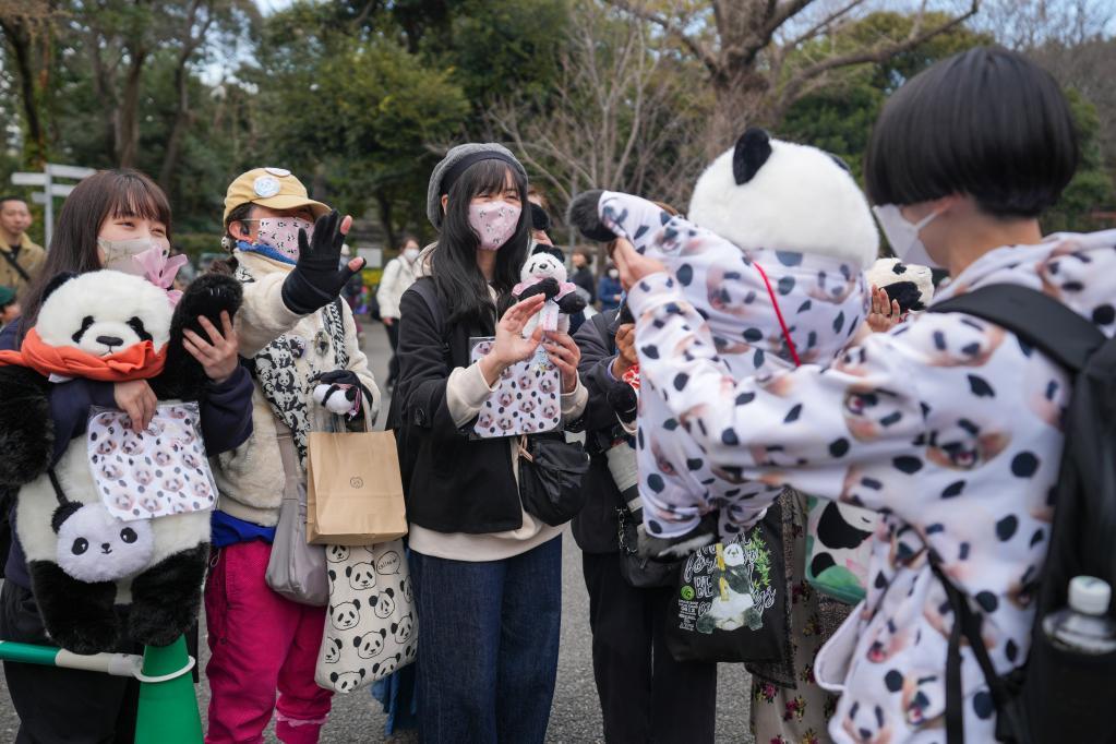 2月19日,在日本東京上野動(dòng)物園,游客排隊(duì)與大熊貓“香香”告別。新華社記者 張笑宇 攝