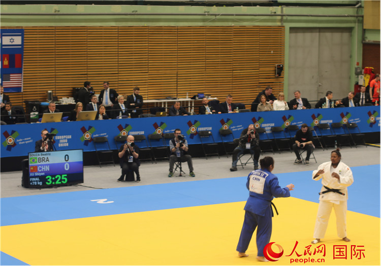 徐仕妍(左)對陣巴西選手。人民網(wǎng)記者 禹麗敏攝 |