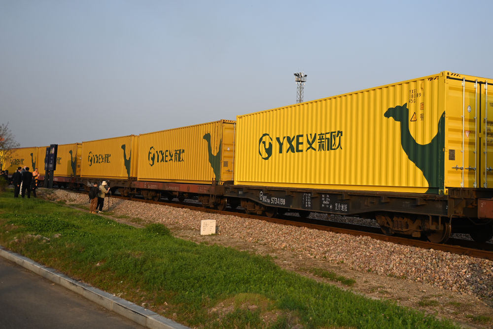 ↑ 3月9日,義烏—馬德里“中西建交紀(jì)念號”中歐班列從浙江義烏鐵路西站開出。新華社記者 黃宗治 攝