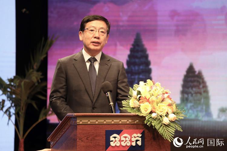 中國駐柬埔寨大使王文天在儀式上發(fā)言。人民網(wǎng)記者 趙益普攝 |