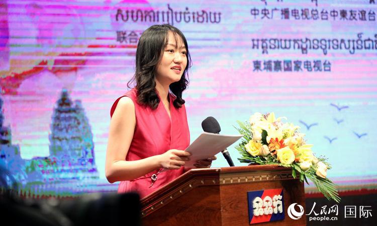 中央廣播電視總臺(tái)柬中友誼臺(tái)負(fù)責(zé)人孔思琦在儀式上發(fā)言。人民網(wǎng)記者 趙益普攝 |