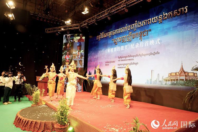 紀(jì)錄片《柬埔寨的微笑》首映式現(xiàn)場(chǎng)的柬埔寨傳統(tǒng)舞蹈表演。人民網(wǎng)記者 趙益普攝 |