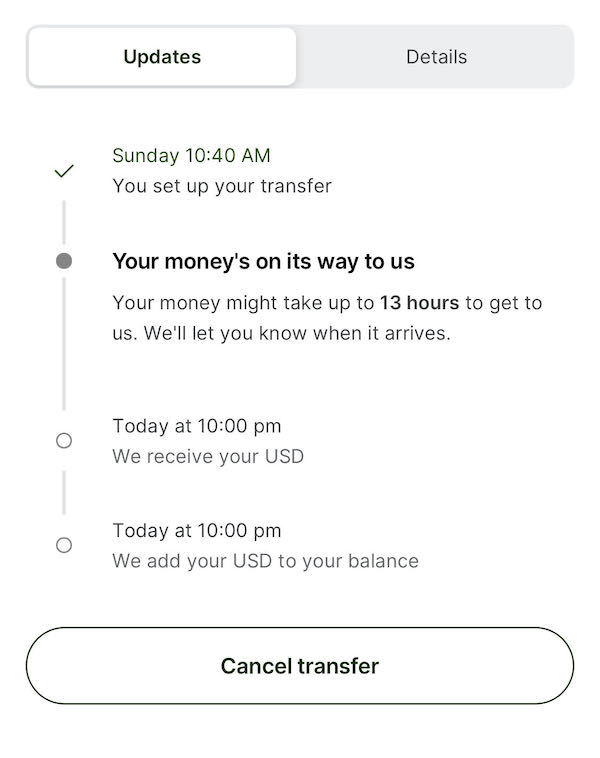 直到周二下午,交易指令開始被接收,然而銀行系統(tǒng)顯示資金在48小時內(nèi)才會到賬。截至北京時間周三20:00左右,系統(tǒng)顯示資金終于到賬,前后整整耗時約三天近70小時。