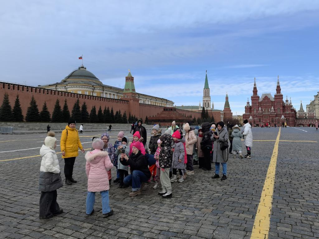 3月17日,俄羅斯首都莫斯科紅場(chǎng)上,青少年在合影留念。新華社記者劉衛(wèi)兵攝