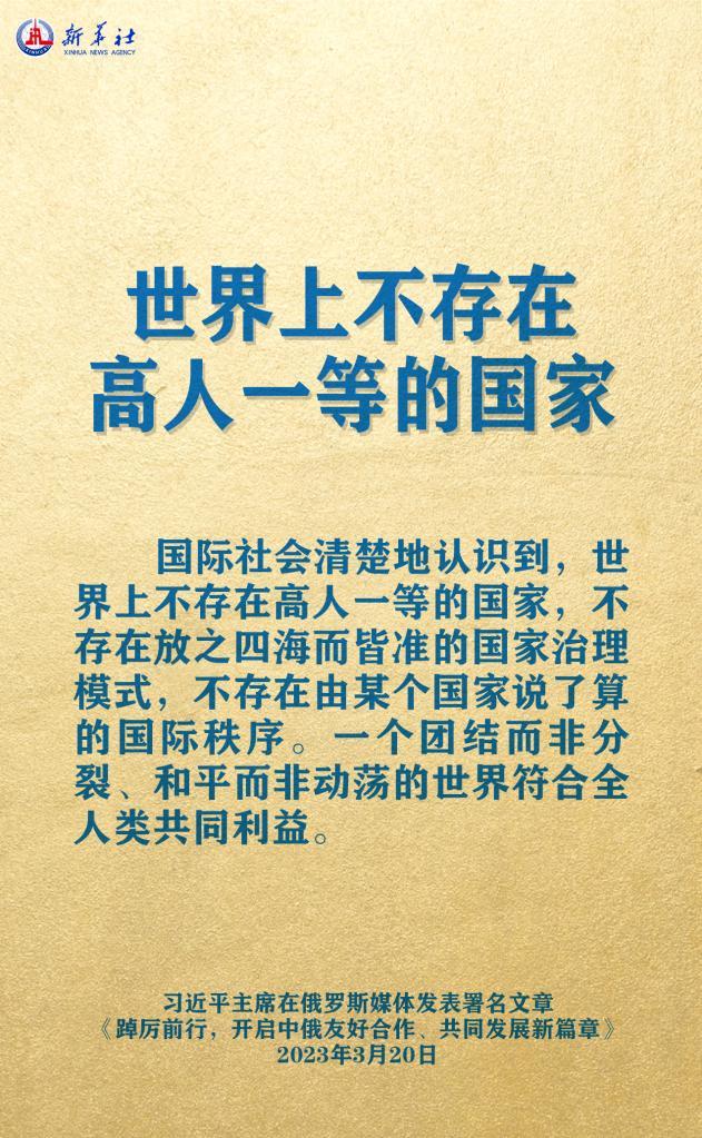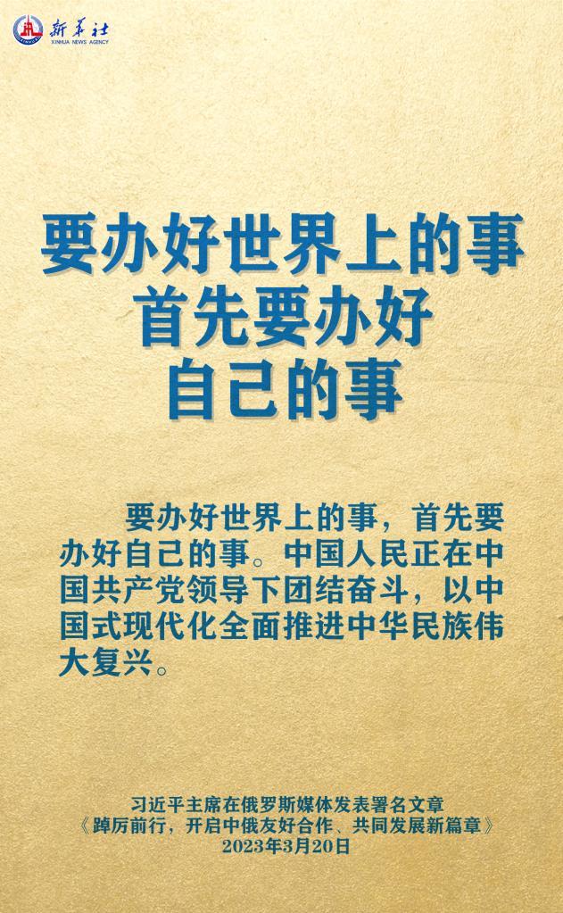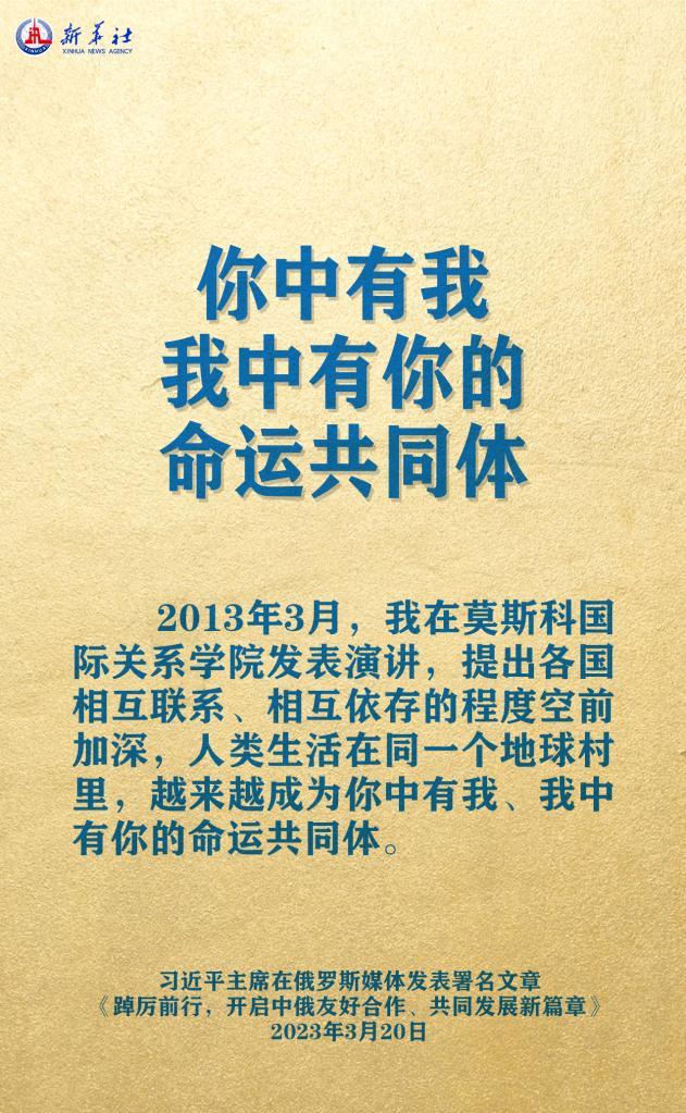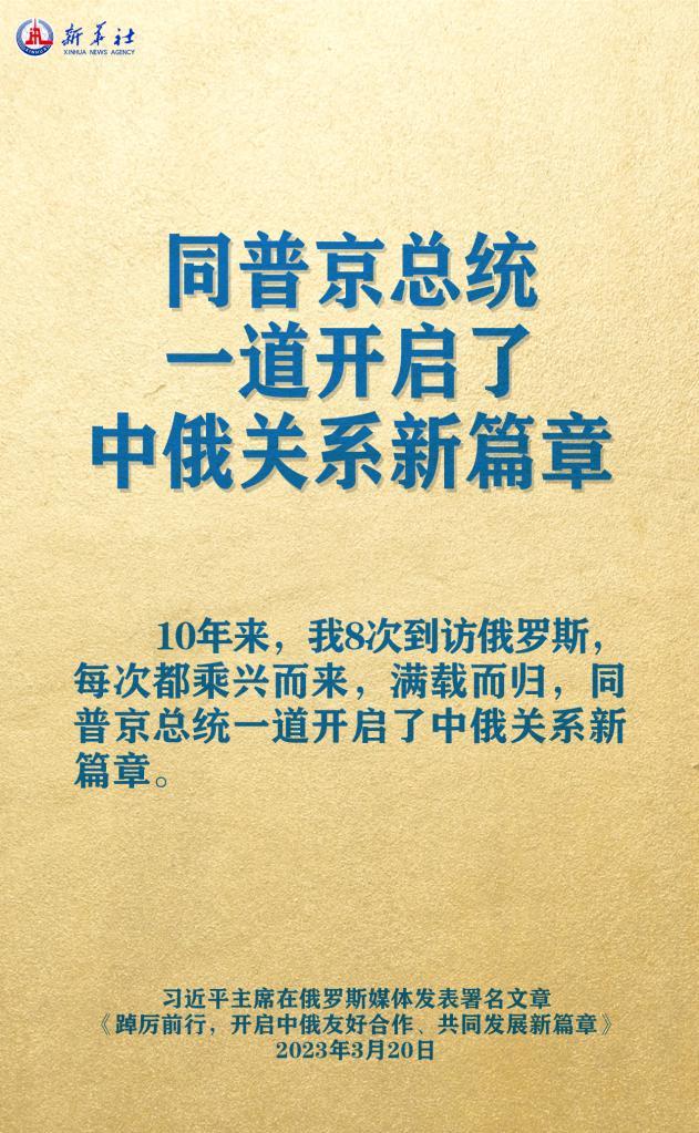 3月20日,在赴莫斯科對(duì)俄羅斯聯(lián)邦進(jìn)行國事訪問之際,國家主席習(xí)近平在《俄羅斯報(bào)》和俄新社網(wǎng)站發(fā)表題為《踔厲前行,開啟中俄友好合作、共同發(fā)展新篇章》的署名文章。