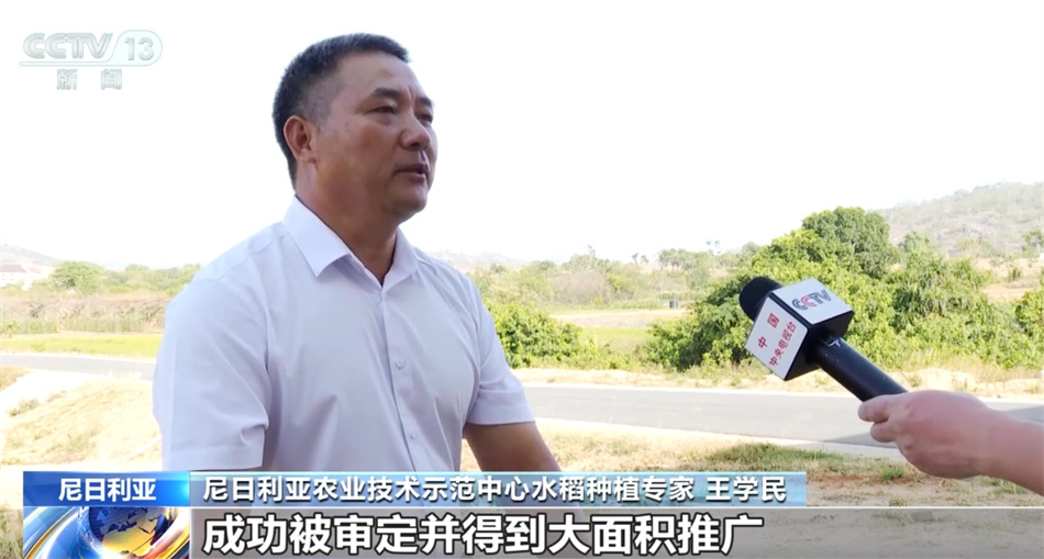 尼日利亞農(nóng)業(yè)技術(shù)示范中心水稻種植專家 王學(xué)民:終于在2017年,我們的新品種成功被審定并得到大面積推廣,它的產(chǎn)量比當?shù)氐闹魍破贩N要增產(chǎn)30%左右,得到農(nóng)民的喜愛。我們的種子還沒有成熟之前,就會被當?shù)馗浇霓r(nóng)民預(yù)訂過去當種子用了。