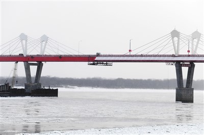 中俄首座跨界江公路大橋的中俄雙方接合位置。大橋起點(diǎn)位于黑龍江省黑河市,終點(diǎn)位于俄羅斯布拉戈維申斯克市。新華社記者 王建威攝