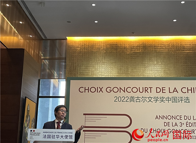 法國駐華大使白玉堂發(fā)表講話并宣布獲獎作家。人民網 謝瑩攝 |