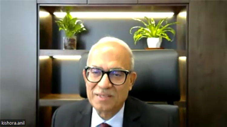 新開發(fā)銀行副行長阿尼爾·基紹拉線上接受媒體采訪。視頻截圖 |