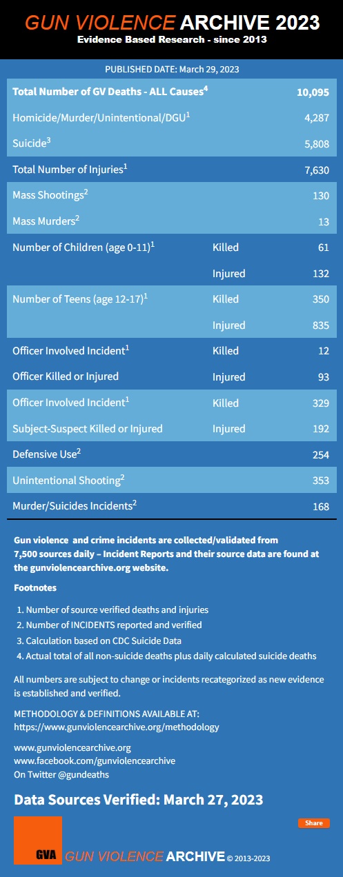 美國(guó)“槍支暴力檔案”網(wǎng)站數(shù)據(jù)顯示,截至3月27日,2023年美國(guó)已發(fā)生130起大規(guī)模槍擊事件。圖片來(lái)源:美國(guó)“槍支暴力檔案”網(wǎng)站官網(wǎng)截圖