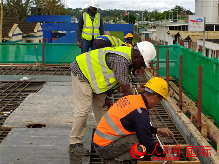 中外工人正在加緊施工作業(yè)。人民網(wǎng)記者 黃培昭攝 |