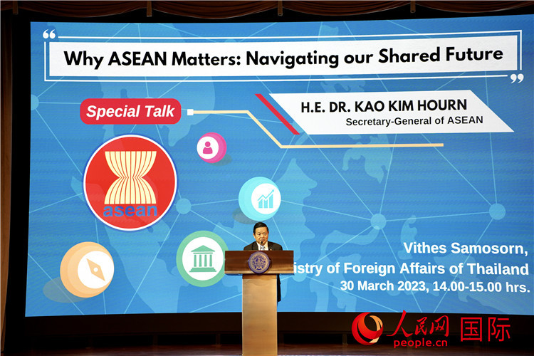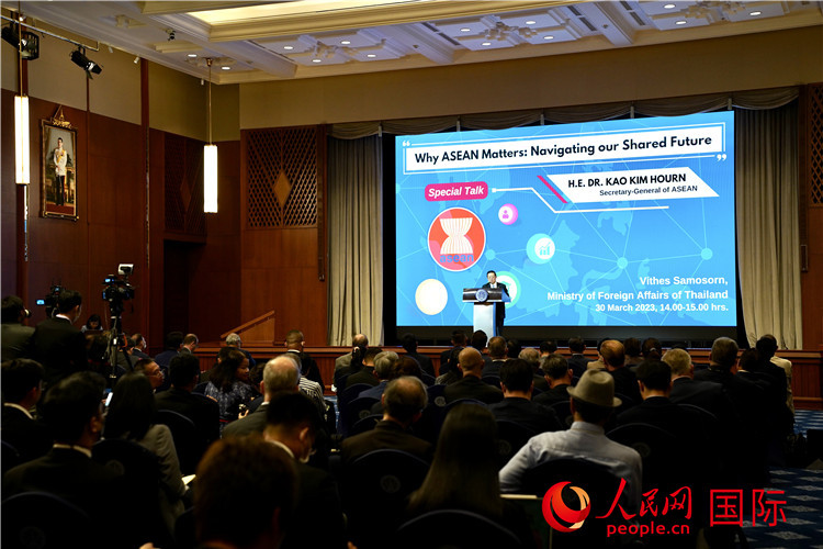 人民網(wǎng)曼谷3月30日電 (記者趙益普,實習生冷江濤、李源欣)當?shù)貢r間3月30日下午,東盟秘書長高金洪于泰國曼谷發(fā)表題為《東盟為何重要:引領(lǐng)我們的共同未來》特別講話。該活動于泰國外交部舉行,吸引了數(shù)百名各國官員、媒體參加。