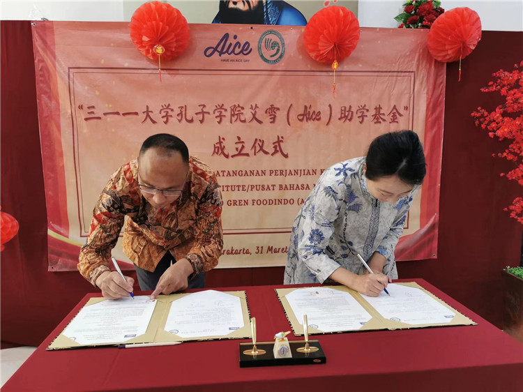 人民網(wǎng)雅加達(dá)3月31日電 (記者張杰)梭羅消息:當(dāng)?shù)貢r間31日,印尼三一一大學(xué)孔子學(xué)院與梭羅艾雪公司舉行了“三一一大學(xué)孔子學(xué)院艾雪助學(xué)基金”協(xié)議簽署儀式。該助學(xué)金計劃每年為中文專業(yè)學(xué)生提供20000000印尼盾(1美元約兌15000印尼盾)的資助,旨在幫助印尼經(jīng)濟(jì)困難的學(xué)生實現(xiàn)求學(xué)夢,并鼓勵優(yōu)秀學(xué)生繼續(xù)深造。
