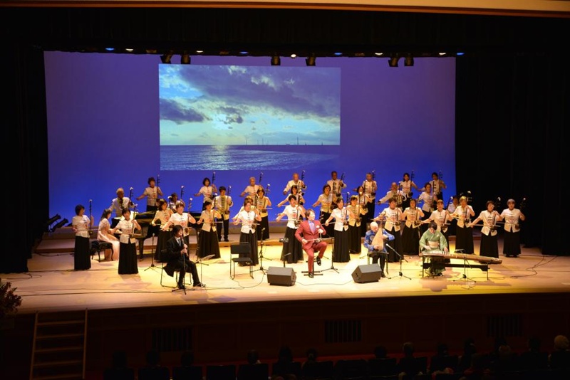 音樂會上,來自中日兩國的二胡、琵琶、尺八演奏家及當(dāng)?shù)囟鷲酆谜?、中小學(xué)生共同演奏了《來吧,春天》、《風(fēng)月同天》、《萬馬奔騰》、《風(fēng)》、《櫻花》等精彩曲目。