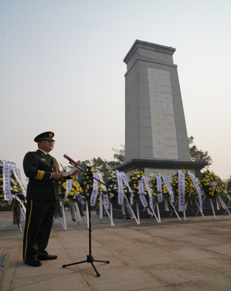 祭掃儀式莊嚴肅穆,松柏蒼翠、哀樂回旋。中老雙方代表懷著莊重的心情,共同向烈士紀念碑敬獻花圈并默哀,向革命英烈們表達崇高的敬意和深切的哀思。