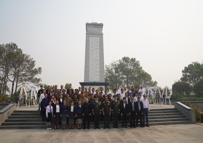 中老兩國代表祭掃中國烈士陵園。中國駐老撾大使館供圖 |