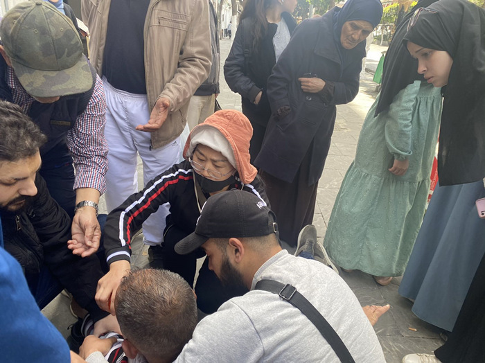 人民網(wǎng)阿爾及利亞4月5日電 (記者王傳寶)4月4日,2名中國援助阿爾及利亞醫(yī)療隊隊員在阿爾及利亞首都阿爾及爾街頭伸出援手,成功救治一名突發(fā)暈厥的病人,贏得當(dāng)?shù)孛癖姷暮迷u。