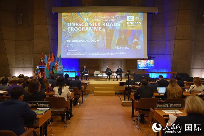 人民網(wǎng)巴黎4月6日電 (記者劉玲玲)6日,由中國、阿塞拜疆、哈薩克斯坦、蒙古、阿曼常駐聯(lián)合國教科文組織代表團(tuán)同聯(lián)合國教科文組織聯(lián)合舉辦的慶祝絲綢之路旗艦項目35周年系列活動在總部位于巴黎的聯(lián)合國教科文組織成功舉辦。系列活動包括絲綢之路國際論壇、絲綢之路青年學(xué)者資助計劃國際研討會、絲綢之路音樂會、絲綢之路杰出藝術(shù)作品展覽以及絲綢之路美食招待會。聯(lián)合國教科文組織《信使》雜志為慶祝35周年發(fā)布了《絲綢時代的故事》特刊,總干事阿祖萊為特刊撰寫卷首語。