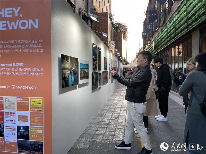 游客在參觀梨泰院街頭藝術(shù)展。實(shí)習(xí)生 許鵬飛攝 |