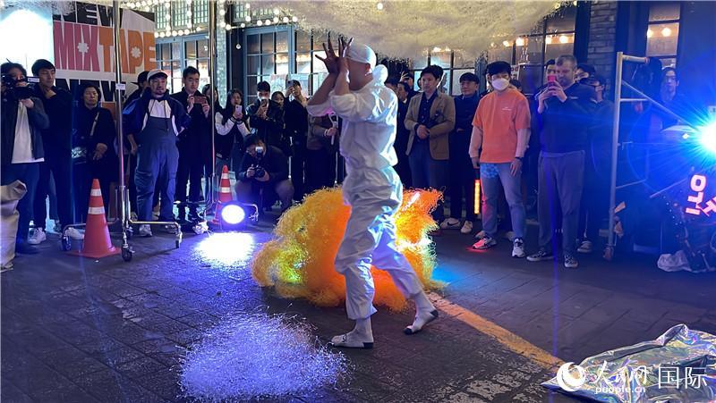 藝術(shù)家在梨泰院街頭藝術(shù)展期間進(jìn)行表演。實(shí)習(xí)生 許鵬飛攝 |