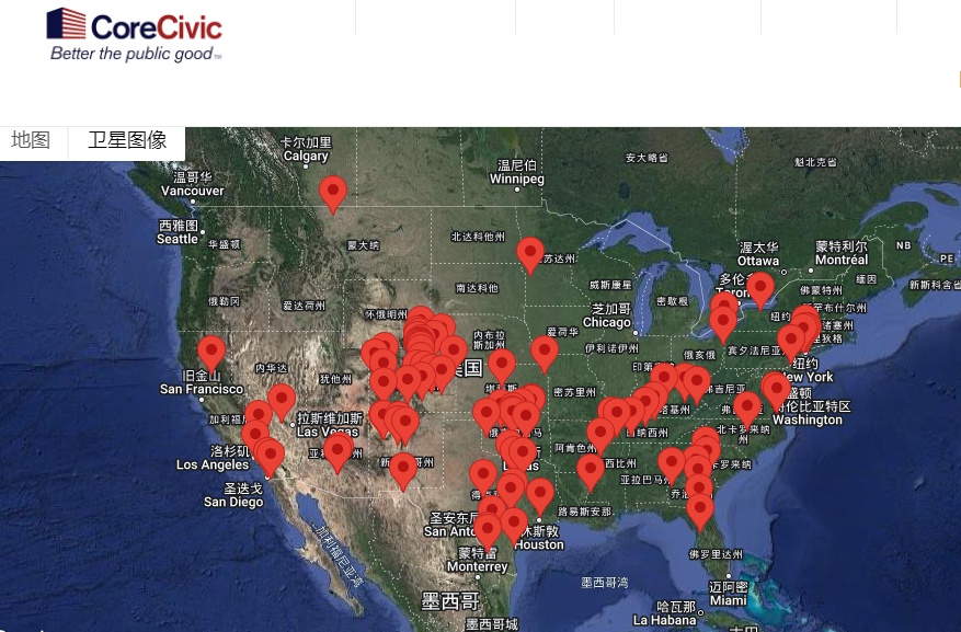 美國懲教公司CoreCivic私人監(jiān)獄遍布美國各地。
