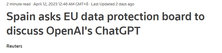 據(jù)路透社4月11日?qǐng)?bào)道,西班牙的數(shù)據(jù)保護(hù)機(jī)構(gòu)要求歐盟的隱私監(jiān)管機(jī)構(gòu)評(píng)估OpenAI公司開發(fā)的聊天機(jī)器人ChatGPT存在的隱私問題。圖片來源:路透社
