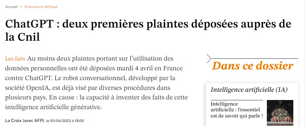 據(jù)法國《十字架報》報道,法國國家信息與自由委員會(CNIL)目前正在調(diào)查有關(guān)OpenAI公司旗下聊天機器人ChatGPT的投訴。圖片來源:法國《十字架報》官網(wǎng)