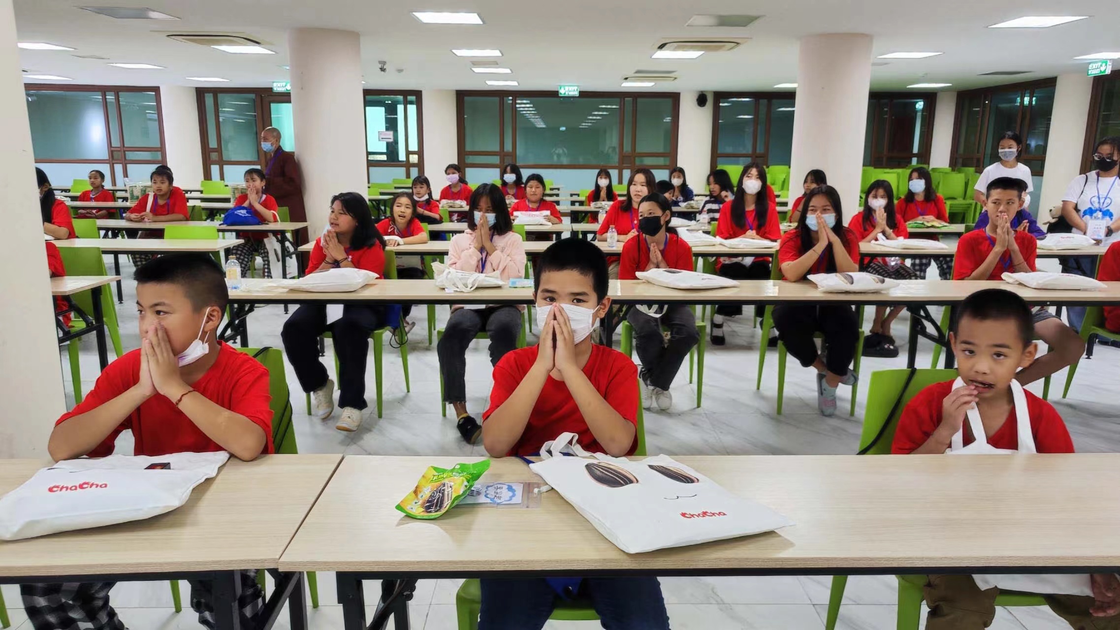 清邁教聯(lián)高級(jí)中學(xué)的學(xué)生收到中資企業(yè)捐贈(zèng)的文具和食品。清邁教聯(lián)高級(jí)中學(xué)供圖