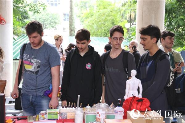 活動(dòng)現(xiàn)場,舞臺(tái)上的漢服表演、武術(shù)表演不時(shí)引起觀眾的喝彩和掌聲,精彩的茶藝表演也讓很多校園內(nèi)的行人駐足觀看。在主辦方設(shè)置的中文課程、書法、中醫(yī)、中國美食等展臺(tái)前,許多巴西學(xué)生饒有興趣地體驗(yàn)著中國文化,現(xiàn)場人頭攢動(dòng),一片熱鬧景象。