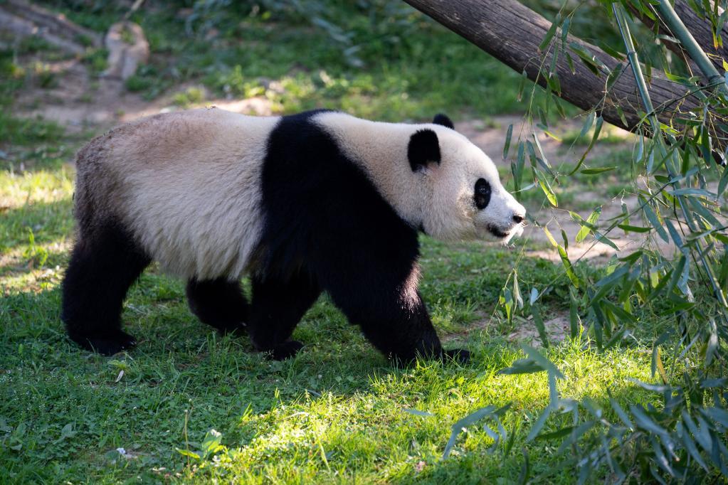 4月19日,在美國華盛頓史密森學會國家動物園,大熊貓“小奇跡”在散步。新華社記者劉杰攝