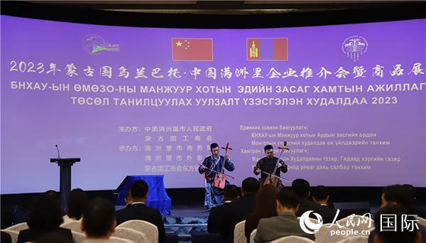 蒙古國(guó)烏蘭巴托·中國(guó)滿洲里企業(yè)推介會(huì)暨商品展示會(huì)開(kāi)幕式。人民網(wǎng)記者 霍文攝 |