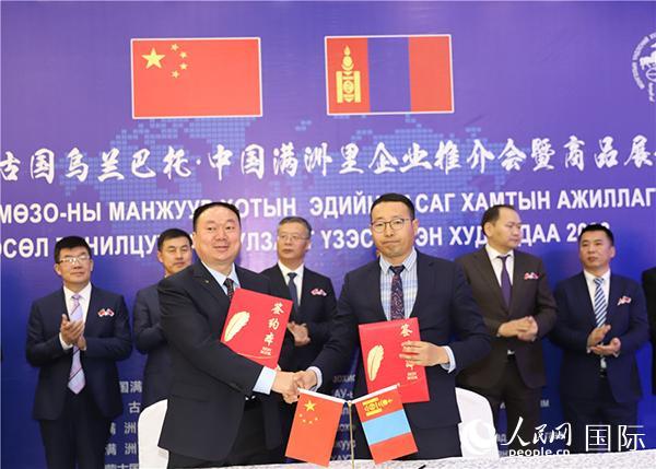 中蒙兩國(guó)企業(yè)簽署商務(wù)合作備忘錄。人民網(wǎng)記者 霍文攝 |