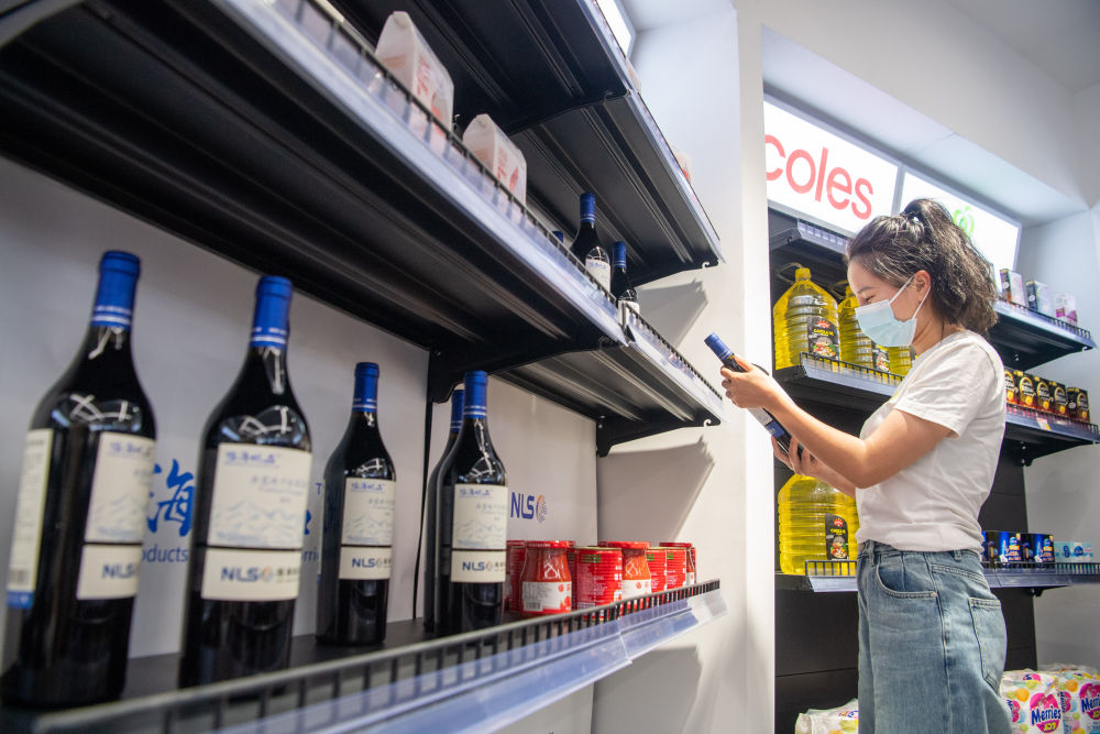 消費(fèi)者在位于重慶解放碑的“陸海新通道國(guó)際消費(fèi)中心”選購商品(2022年5月28日攝)。新華社記者 唐奕 攝