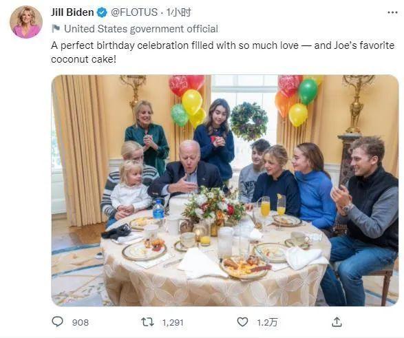 20日,拜登與家人慶祝80歲生日。圖片來(lái)源:美國(guó)第一夫人吉爾·拜登社交媒體賬號(hào)截圖