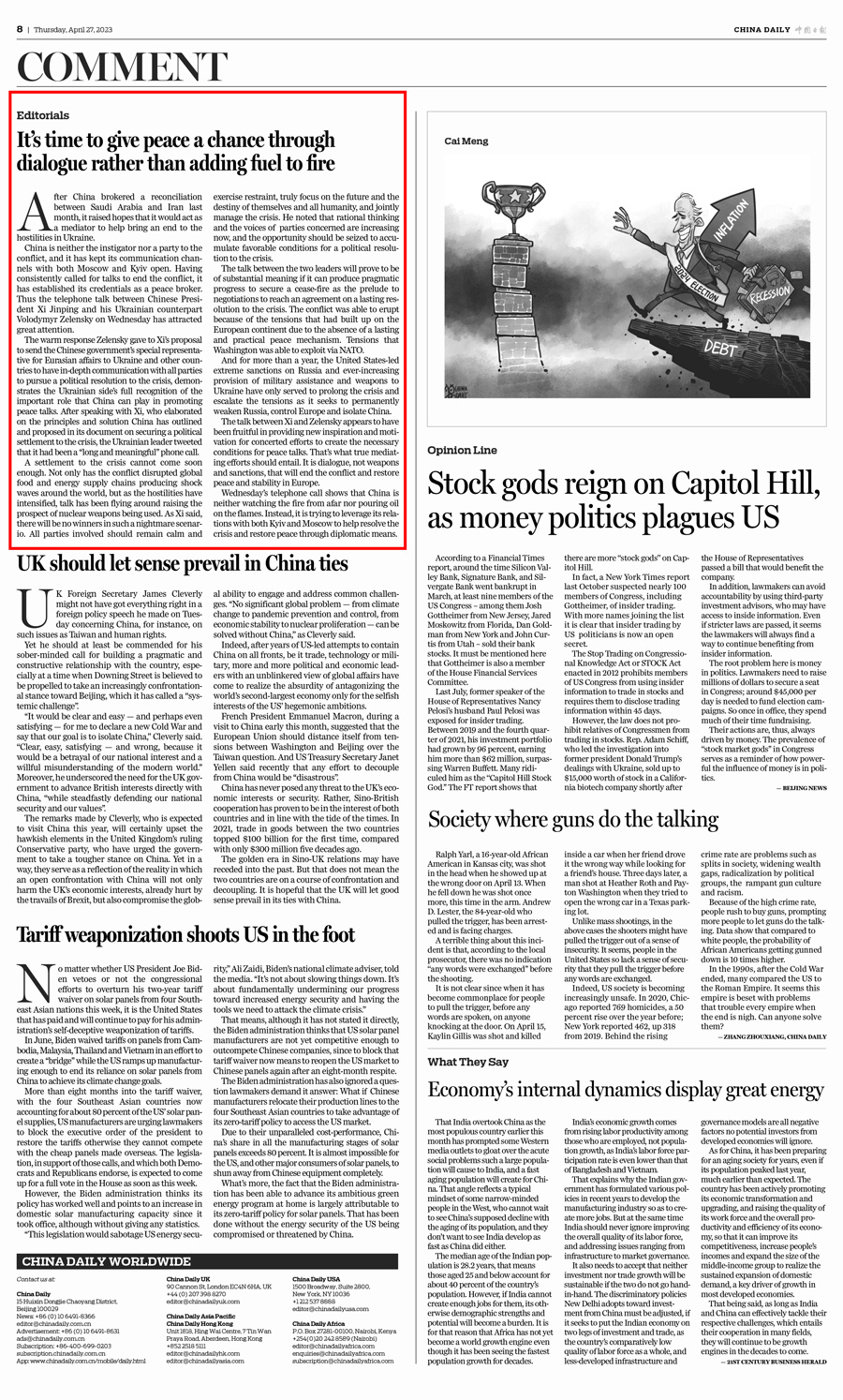 (本文譯自《中國日報(bào)》4月27日社論。編譯:王輝)