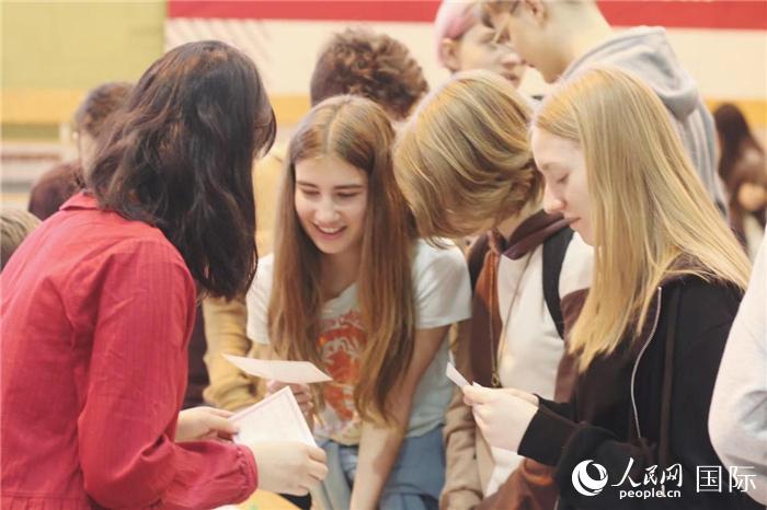 學(xué)生們現(xiàn)場(chǎng)學(xué)習(xí)中文問(wèn)候語(yǔ)。人民網(wǎng)記者 禹麗敏攝