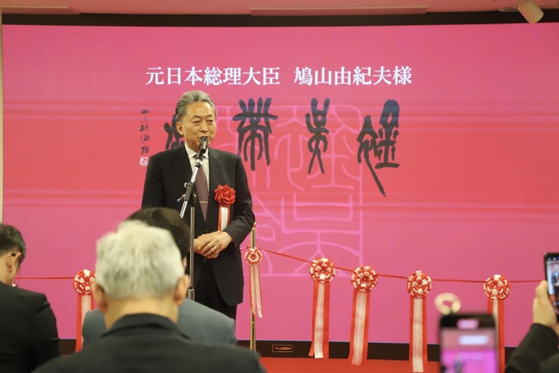 日本前首相鳩山由紀(jì)夫在展會上發(fā)表致辭。郭丹 攝