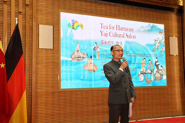 童德發(fā)致歡迎辭時說,值母親節(jié)來臨之際,向在場的各位母親致以誠摯節(jié)日問候。在中國素有以茶奉母的做法,兒女們每逢佳節(jié)向母親敬茶以示孝敬,這與今天招待會的主題相得益彰。中國是茶的故鄉(xiāng),茶文化起源于中國,飄香于世界,在歷史上一直是中國連通世界的文化紐帶,向全世界傳遞了“人與自然和諧共生”的中國文化內涵??傤I館愿同來賓們共慶節(jié)日,共品茶香茶韻,全方位體驗中國特色茶文化。期待中德兩國通過更多人文交流,增進人民之間的相互了解和友誼。