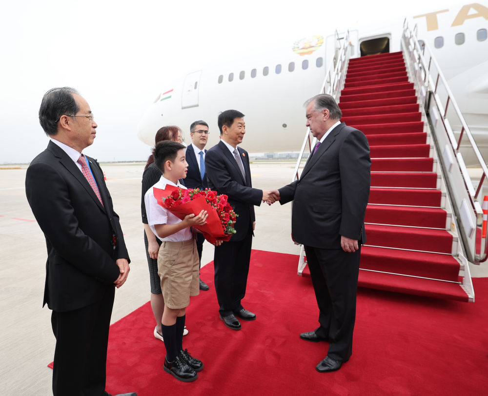中國-中亞峰會將于5月18日至19日在陜西省西安市舉行。5月17日,塔吉克斯坦總統(tǒng)拉赫蒙抵達西安。